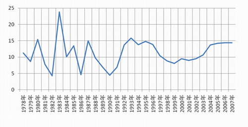 通过对改革开放以来河南经济增长波动的分析比较,可以得到的基本结论是,受宏观调控政策和工业化、城市化、市场化、国际化合力驱动的作用,河南经济增长周期呈现出峰位降低、谷位上升、波幅缩小的新态势,并且经济周期逐渐从过去的短周期向中周期过渡。但应该看到,由于经济的快速增长主要依赖于生产要素的大量投入和生产规模的外延式扩大,“高投入、高消耗、高排放、低效率”的粗放型增长方式还没有根本性转变,造成资源瓶颈约束加剧、环境压力加大,将在一定程度影响经济的可持续发展,并可能引发经济的剧烈波动。